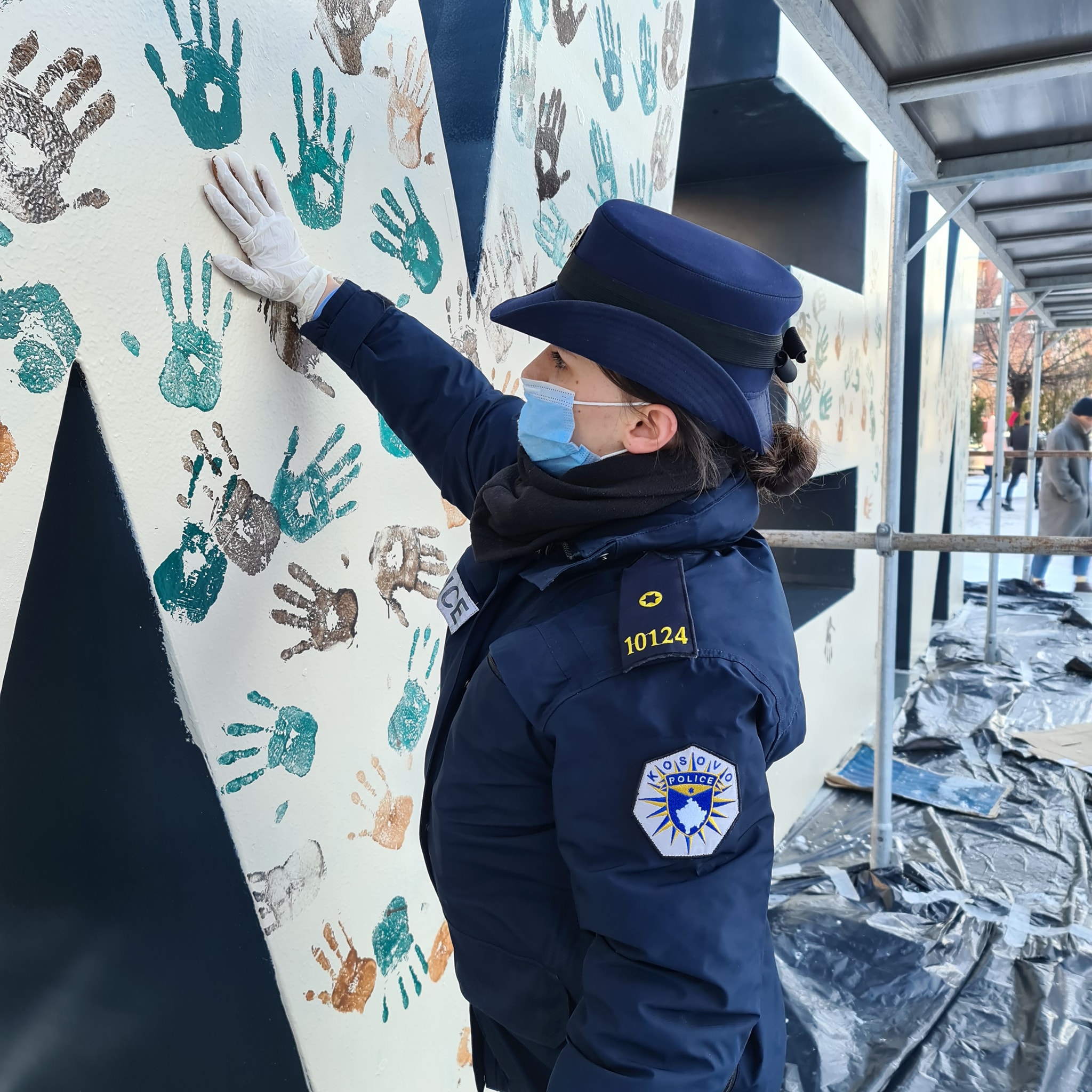 Mbështetje i ka dhënë edhe një police e Kosovës, e cila i ka vendosur shenjat e duarve në këtë monument, përcjell Klan Kosova