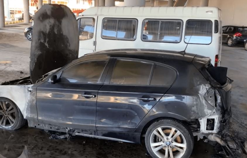 Fotoja e makinës së djegur tip “BMW” plotësisht në pjesën e përparme. Në ngjarjen e ndodhur në Krujë ndodhet policia për të zbuluar më shumë.