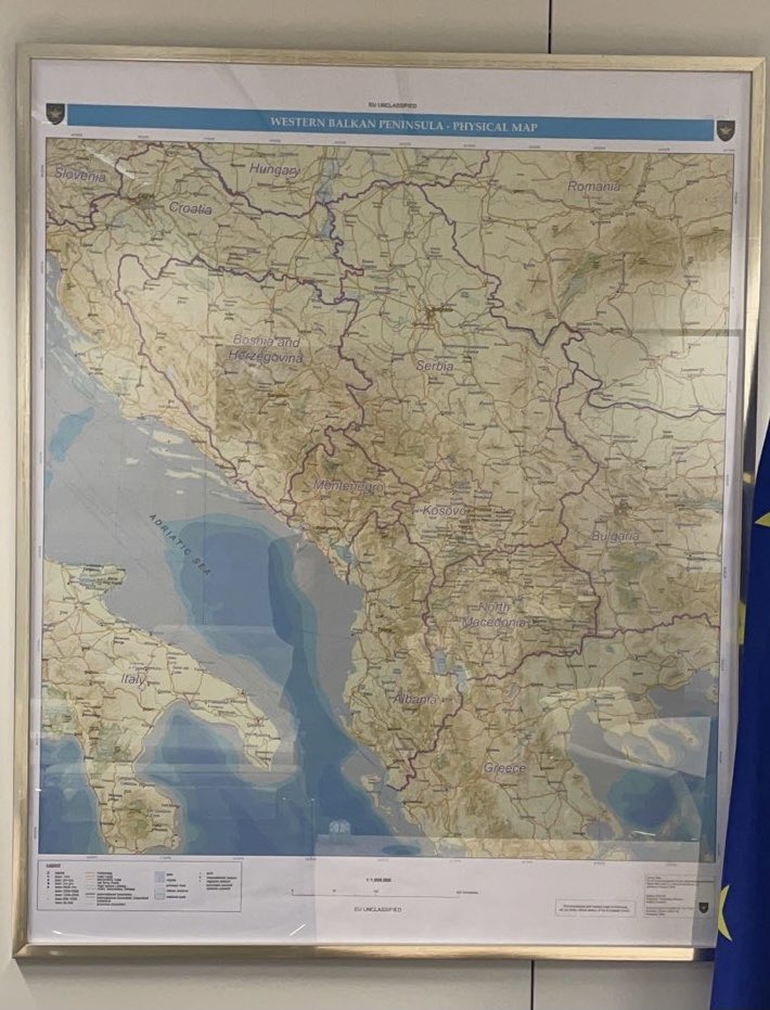 As the map in my office in the blurred screenshot of my interview has caused some misperceptions today, I am sharing an actual close-up photo of it. It is an official EU map of the Western Balkans. Kosovo is there and so is the line separating Kosovo from Serbia. pic.twitter.com/VXFggOLmug