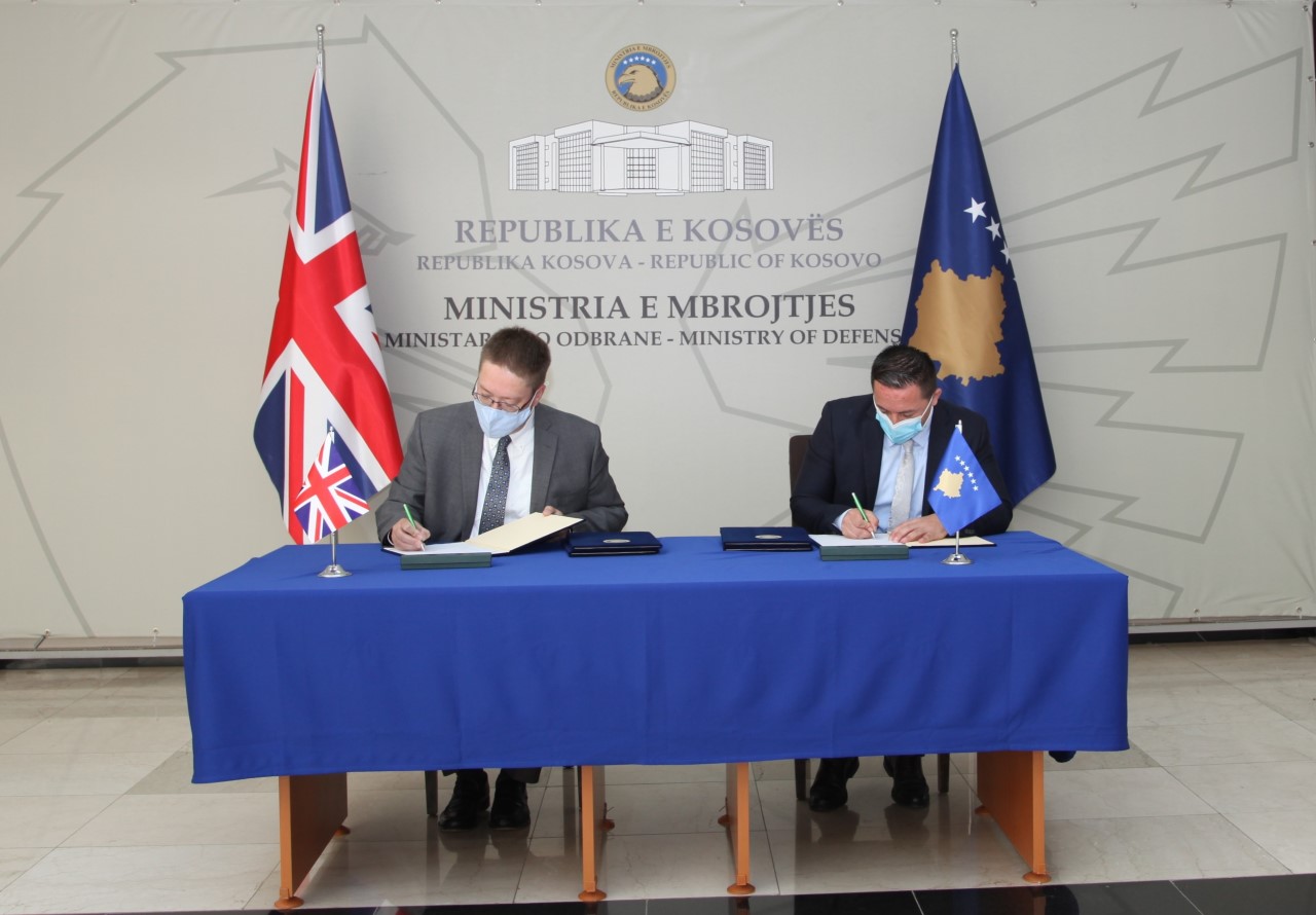 Në ambientet e Ministrisë së Mbrojtjes u nënshkrua Memorandumi i Mirëkuptimit ndërmjet Ministrisë së Mbrojtjes, përfaqësuar nga ministri i Mbrojtjes, Armend Mehaj dhe Qeverisë së Mbretërisë së Bashkuar përfaqësuar nga ambasadori i Mbretërisë së Bashkuar në Kosovë, Nicholas Abbott, përcjell InLajmi.