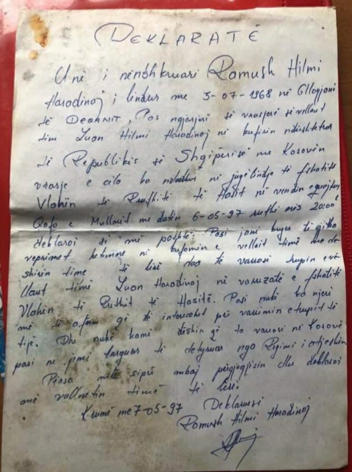 Kjo letër për Ramushin dhe familjën Haradinaj është shumë pikëlluese.