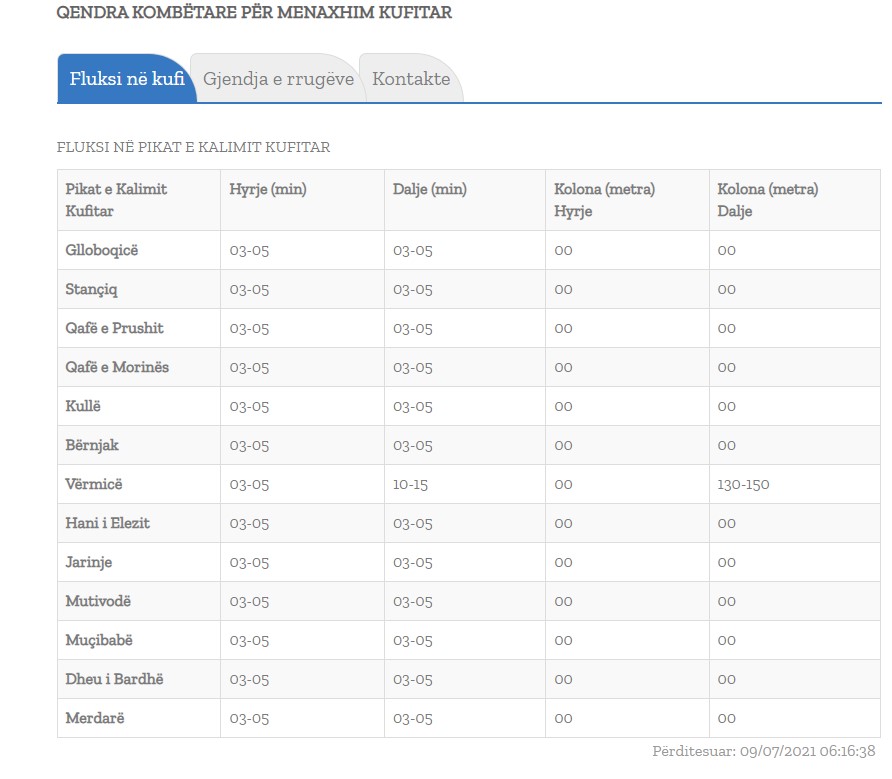 Sipas Qendrës Kombëtare për Menaxhim Kufitar, kolona e veturave në dalje të pikës kufitare në Vërmicë është 130-150 metra, dhe pritjet janë 10 deri në 15 minuta.