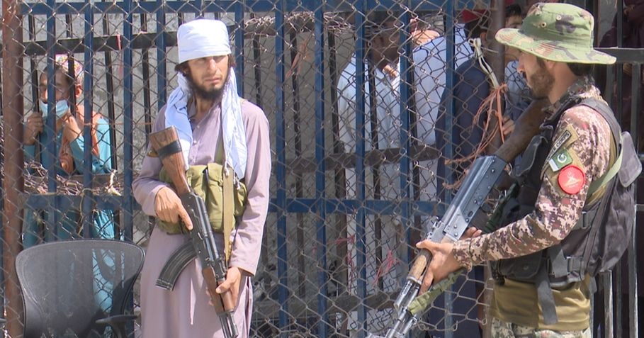Flamuri 3-ngjyrësh i Republikës së Afganistanit është zëvendësuar me flamurin e bardhë të Emirateve Islamike të Afganistanit, dhe në vend të forcave të sigurisë kufitare afgane tani qëndrojnë militantët talebanë me mjekër.