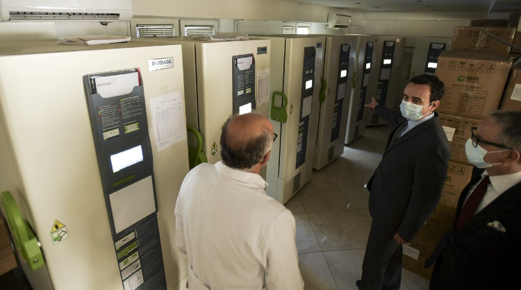 U vizitua qendra operative dhe hapësirat ku në frigoriferë po mbahen mbi 530 mijë vaksina Pfizer në temperaturë -85 gradë celsius, dhe rreth 20 mijë vaksina Astra Zeneca mes 2-8 gradë celsius.