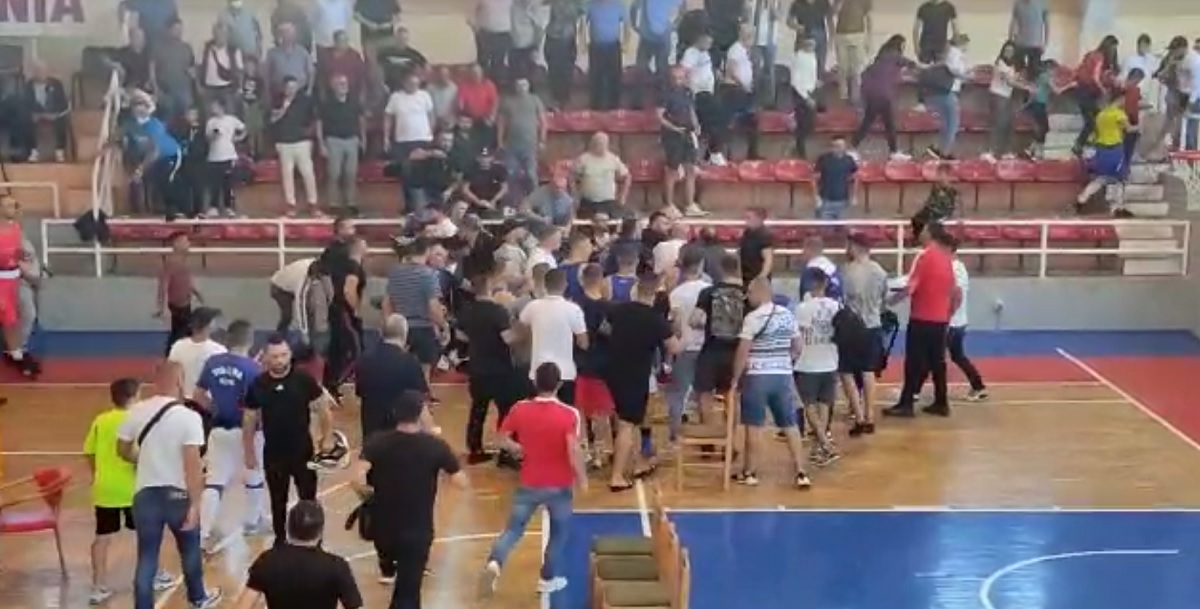 Pas ndeshjes mes Alban Beqirit të Tiranës dhe Arjon Kajoshit të Vllaznisë tifozë e boksierëve të të 2 ekipeve kanë zbritur në parketin e pallatit të sportit në Shkodër dhe janë përplasur fizikisht, përcjell tvklan.al