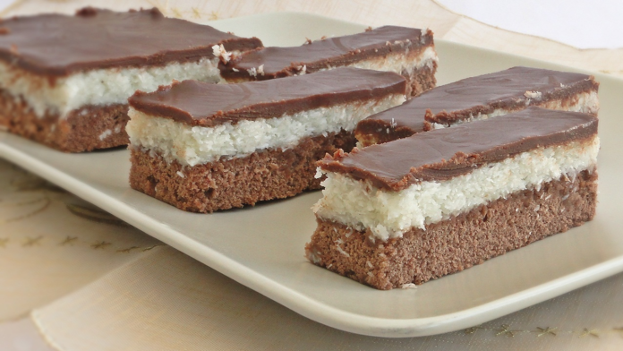 Në një kallëp të thellë e të lyer me yndyrë vendosim një shtresë biskota katrorë të njomura në pak qumësht, qesim një shtresë të hollë nga kremi me qokollatën dhe ajkën.