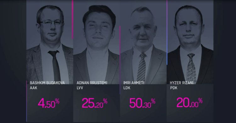 Kundërkandidati i tij nga Lëvizja Vetëvendosje Adnan Rrustemi, i ka fituar 25.20%.