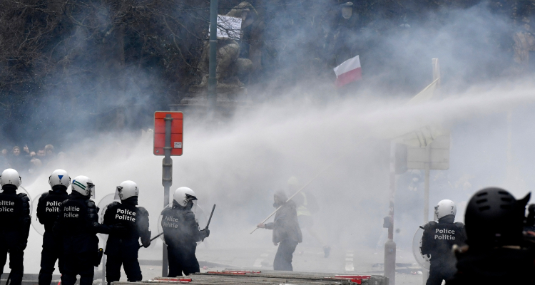 Policia belge shpërndau protestuesit me topa uji dhe gaz lotsjellës, ndërsa mijëra njerëz po protestojnë nëpër Bruksel, duke kërkuar t’i jepet fund rregullave të ashpra ndaj Covid-19, transmeton InLajmi.