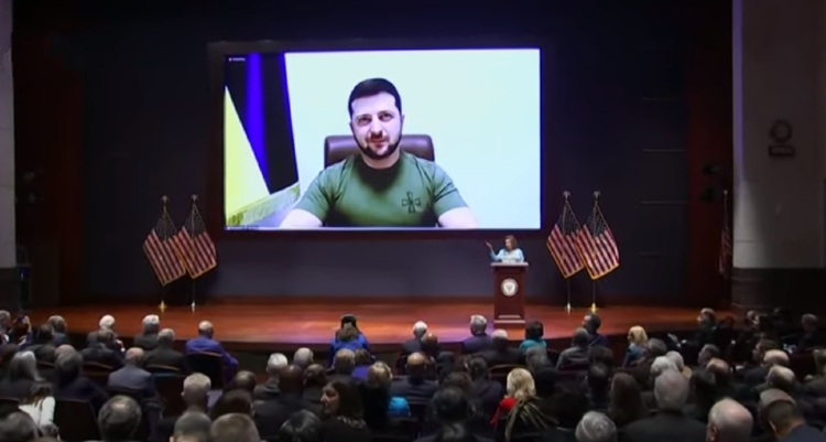 Presidenti i Ukrainës Volodymyr Zelensky iu referua sulmit në Pearl Harbor, gjatë Luftës së Dytë Botërore, si dhe sulmeve të 11 shtatorit 2001, në fjalimin e tij para ligjvenësve amerikanë duke i bërë thirrje Kongresit të bëjë më shumë për të ndihmuar luftën e Ukrainës kundër Rusisë.