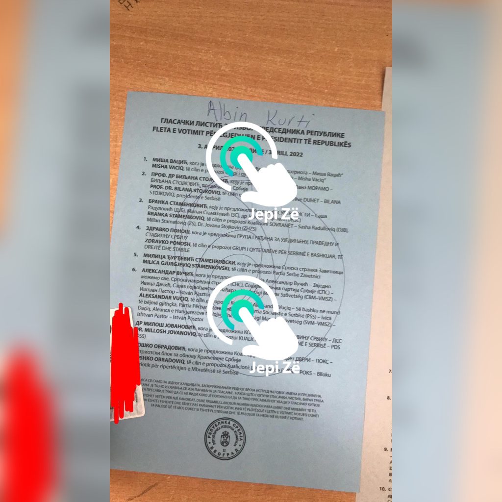 Në një fletëvotim, në të cilin është supozuar të votohet një nga kandidatët për President/e të Serbisë, është shkruar emri i kryeministrit Kurti.