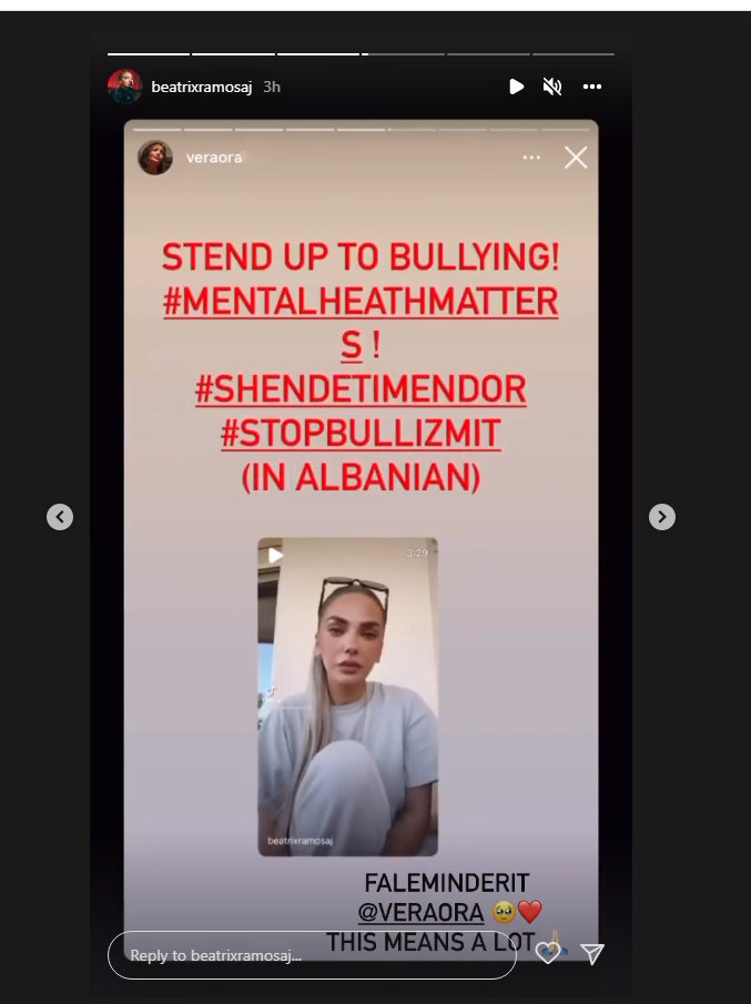 Sipas Orës bullizmi është dukuri që duhet të ndalohet pasi shëndeti mendor ka rëndësi të madhe, ndërsa ndër rreshta nëna e Ritës i tha Beatrixës së është shumë lumtur që një vajzë si ajo flet hapur për këto tema.