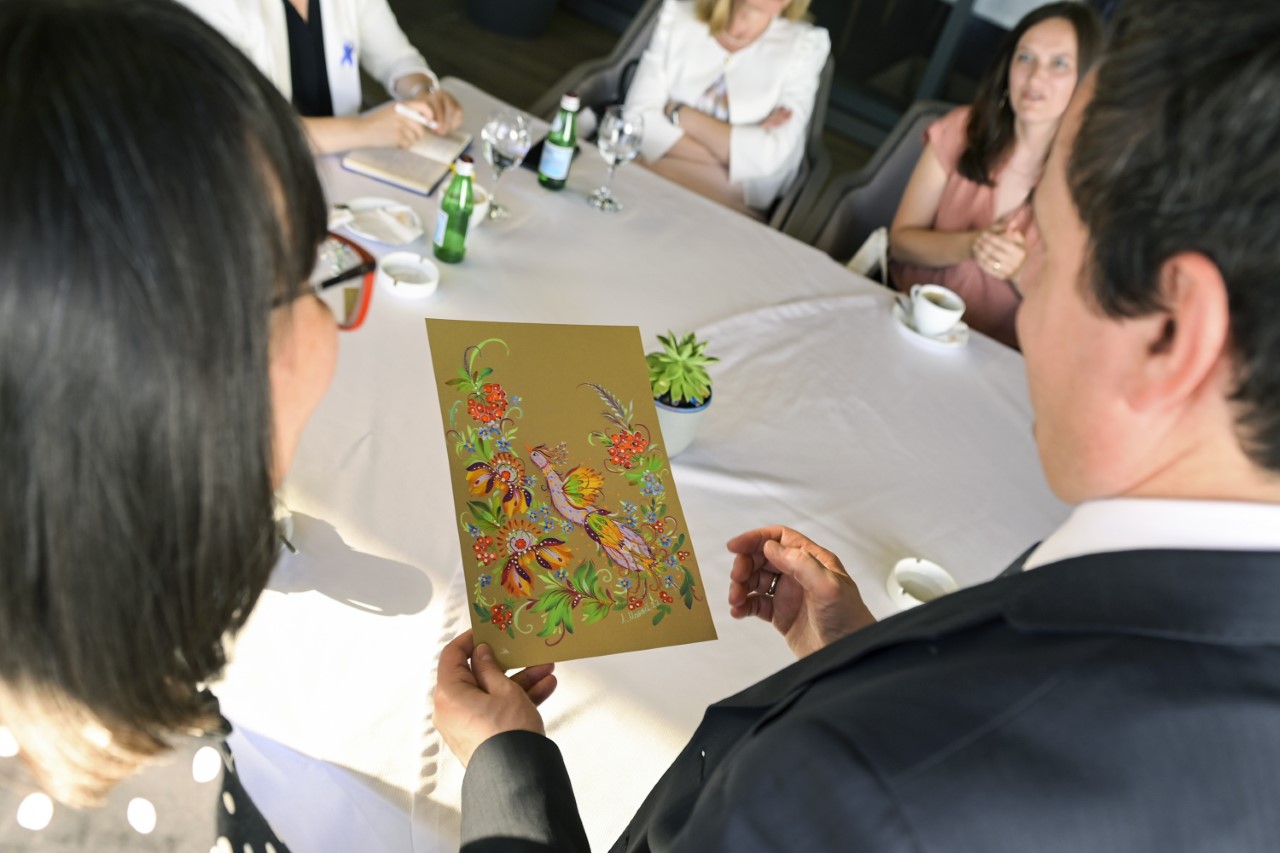 Gjatë takimit kryeministri Kurti ka pranuar një dhuratë simbolike nga Lyudmila Makey.