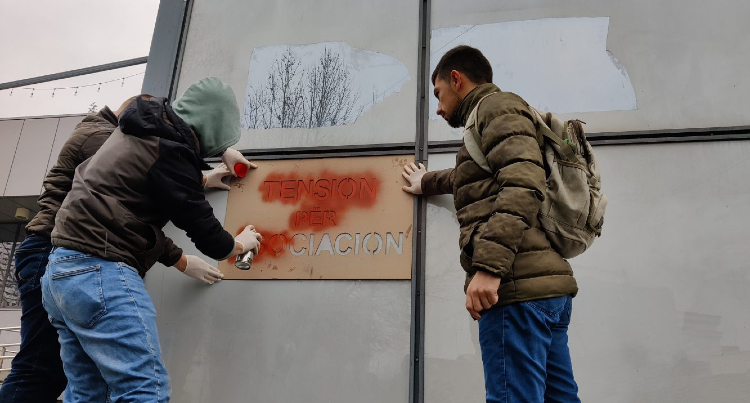 Anëtarë të PSD-së kanë shkruar në ndërtesën e Qeverisë “tension për Asociacion” dhe “tension për koncesion”.