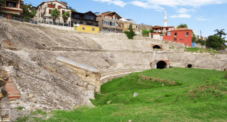 Ky amfiteatër ka arkitekturë romake dhe ndërtimi i tij në qendër të qytetit 350 m larg detit, fillon në rrafshin e arenës 5.5 m mbi nivelin e detit, ndërsa 2/3 mbështetet në kodër. Amfiteatri 2700-vjeçar qëndron mes 30 amfiteatrove të zbuluar të botës antike nga Roma deri në Budapest dhe Lion, shkruan Kult Plus.