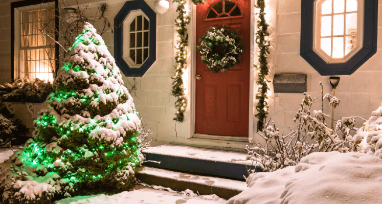 Për zbukurimin e derës së jashtme përdorim degët nga pemët natyrale duke u dhënë forma dhe stil festiv. Kurorës së mirëseardhjes i është dhënë forma katrore, të cilën mund ta zbukuroni me lule ose aksesorë të tjerë si, drita, lodra etj. Përdorimi i flokëve të dëborës është shumë interesant duke përdorur ngjyrën e kuqe, si ngjyra tradicionale e festave. Për to mund të përdorim copa, të cilat i presim në formën e duhur dhe i varim në oborr.