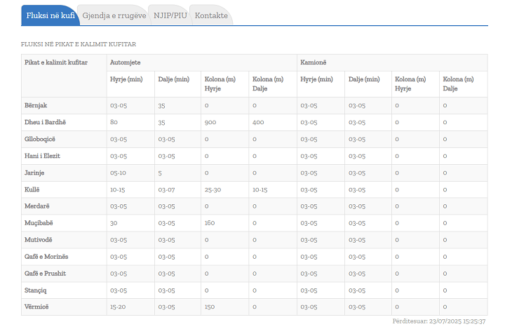 Qendra Kombëtare për Menaxhim Kufitar ka raportuar për pritje të gjata në disa pika kufitare me Kosovën.