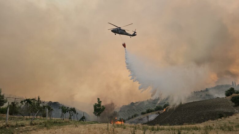 Disa banorë janë evakuuar me vështirësi për shkak të tymit të dendur. Një helikopter është angazhuar për ndërhyrje ajrore, ndërsa konfirmohet një viktimë si pasojë e zjarrit.