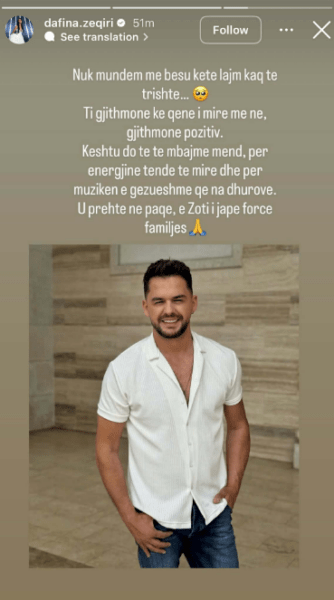 “Nuk mundem me besu këtë lajm kaq të trishtë… Ti gjithmonë ke qenë i mirë me në, gjithmonë pozitiv. Kështu do të të mbajmë mend, për energjinë tënde të mirë dhe për muzikën e gëzueshme që na dhurove. U prehte në paqe, e Zoti i japë forcë familjes”