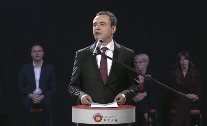 Pas intonimit të himnit kombëtar, Kurti u ndal te mesazhi elektoral i Vetëvendosjes, duke prezantuar slloganin “siguri dhe begati”, të shoqëruar me thirrjen “mos lësho pe”, shkruan lajmi.net.
