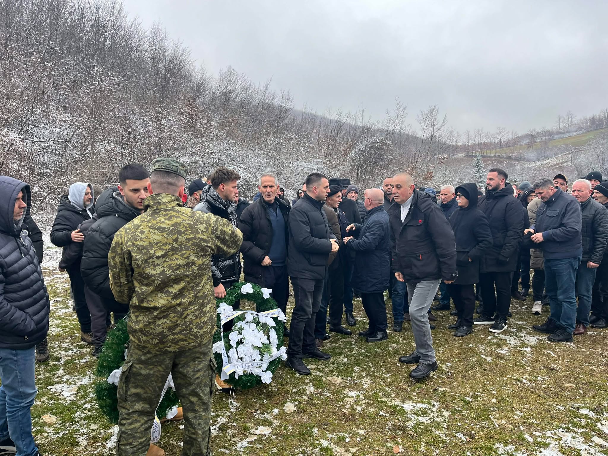 Në ceremoni po marrin pjesë shumë qytetarë e ish – ushtar të UÇK-së por i pranishëm nuk është edhe i biri i tij Cali të cilit iu mohua e drejta e tij për ta vizituar babain sa ishte i sëmurë, e madje edhe që kishte minutat e fundit të jetës së tij.