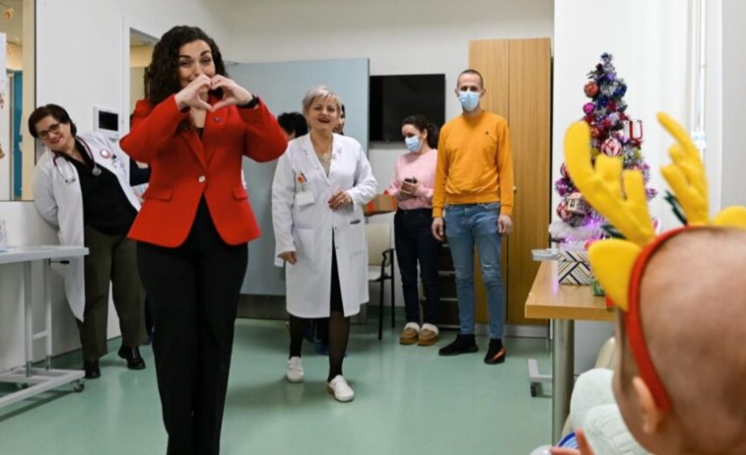 Presidentja e Republikës së Kosovës, Vjosa Osmani, ka vizituar fëmijët në repartin e hemato-onkologjisë në Klinikën e Pediatrisë, në ditën e fundit të këtij viti.